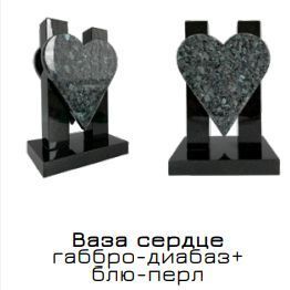 Ваза сердце из габбро-диабаза и блю перл гранита 33 см