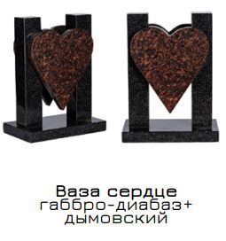 Ваза сердце из габбро-диабаза и дымовского гранита 33 см